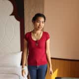 170 cm, nice body. She was laughing at cheerful, it was cute. Pretty shy, so she was smiling all the way. When I kissed her, she inserted her tongue into my mouth. It seemed she was motivated. She did blowjob well. Then I inserted my dick bareback with cowgirl position. She moved well. Her back is beautiful! It seems quite muscular. When doggystyle, her body line is so nice. good moan. The last was creampie. She covered her pussy so that the sperm did not fall on the bed, wonderful good girl ! But I wanted to shoot her pussy,,so I took out her hand and came out sperm. Then, she ran into the shower ,,, it was okay if she wash it soon !